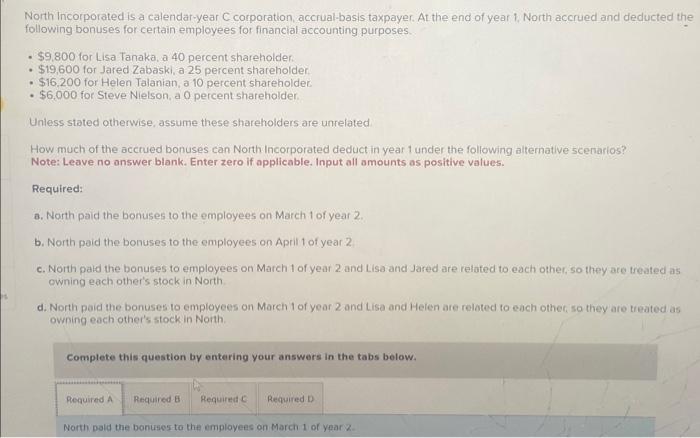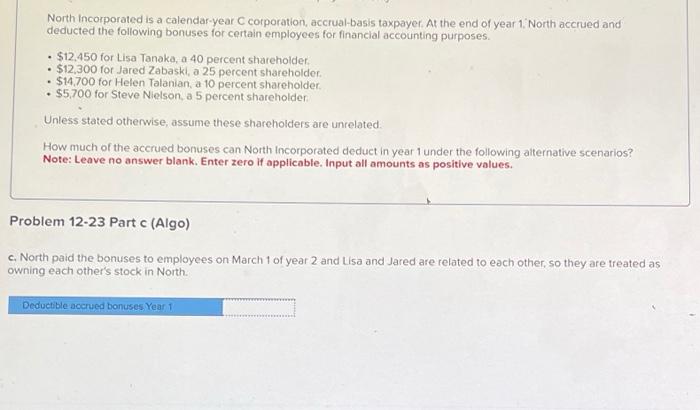 Solved North incorporated is a calendar year C corporation