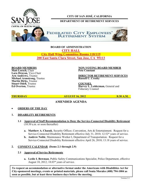Agenda August 2012 City of San Jose Retirement Services