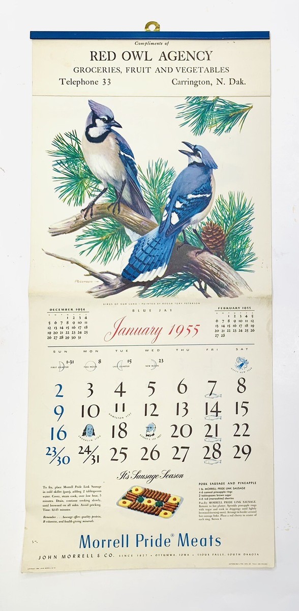Vintage North Dakota Advertising Calendar 1955 Carringtion Red Owl