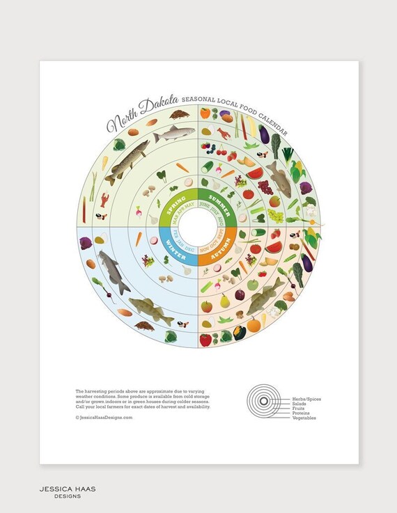 NORTH DAKOTA Local Food Guide, Kitchen Wall Decor, Local Produce