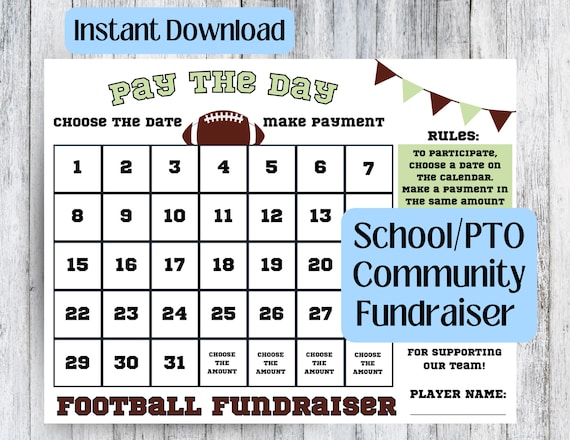 Pay the Day Football Fundraiser Cash Calendar School PTO