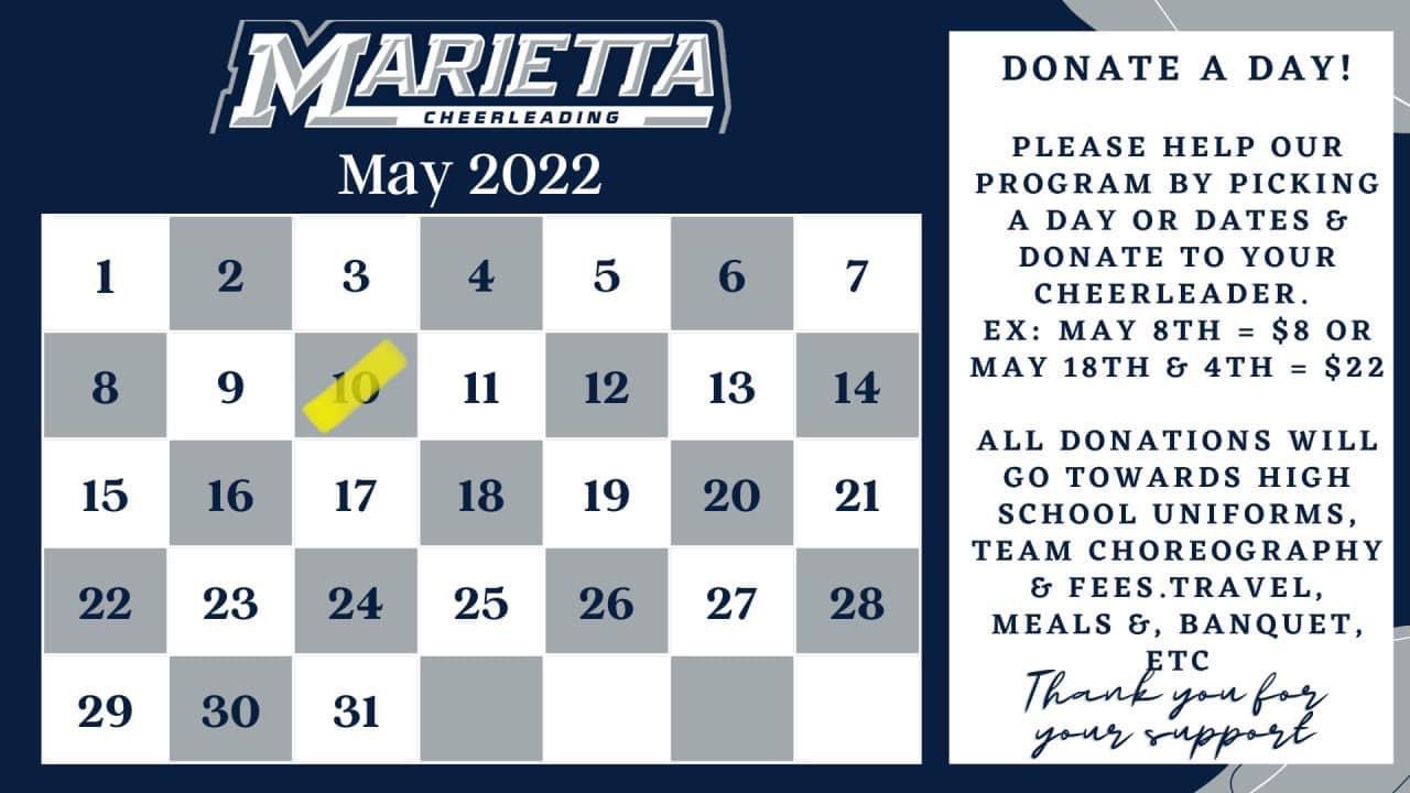 CHEER Pick a Date to Donate, Calendar, INSTANT DOWNLOAD